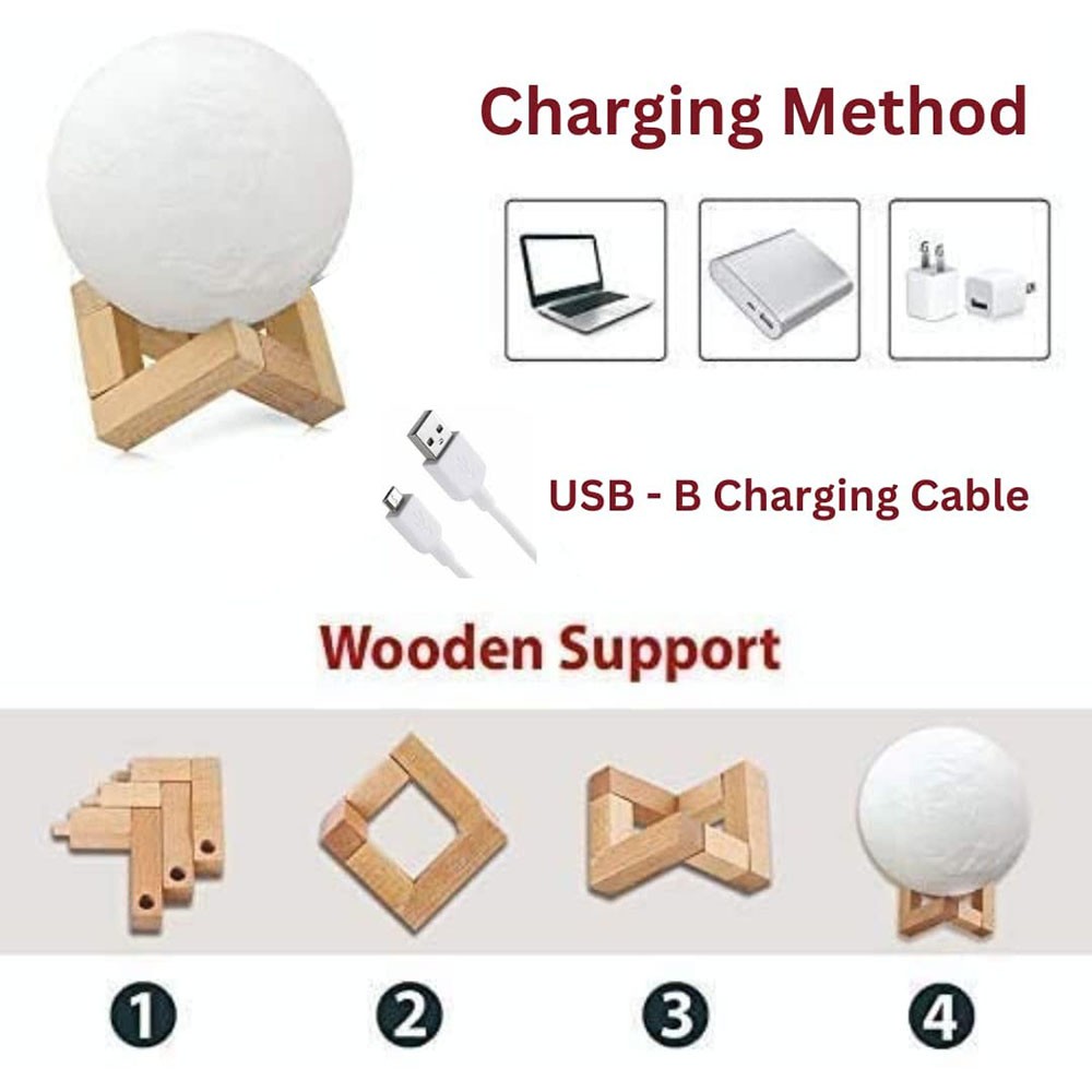 Ideal for bedrooms, kids’ rooms, or as a unique gift, this multicolor moon lamp brings warmth and charm to your home!