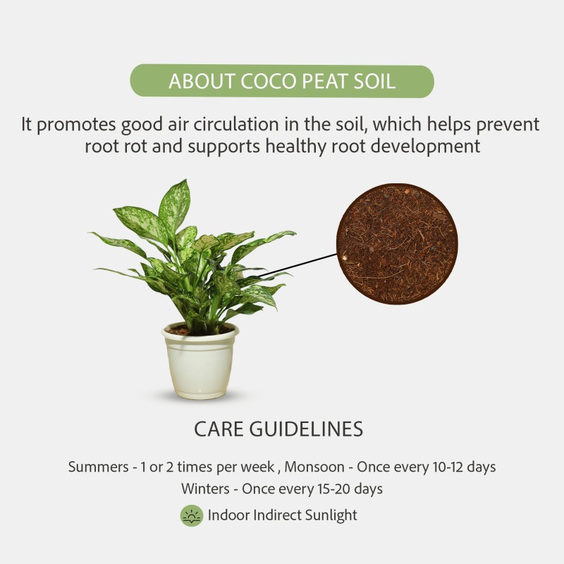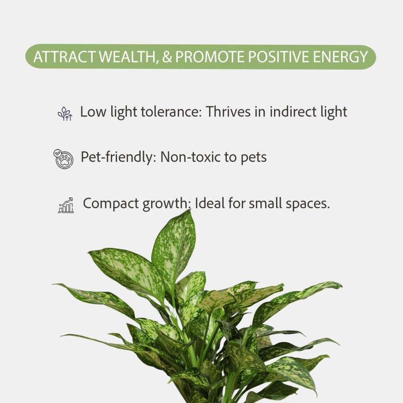 The Aglaonema Snow White combines aesthetic appeal with practicality, making it a favorite among plant enthusiasts and interior designers alike.
