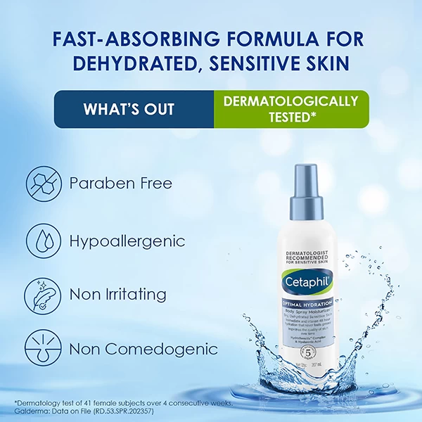 Experience deep hydration and skin nourishment with Cetaphil Optimal Hydration Body Spray Moisturizer—your skin’s new hydration hero! Shop now for soft, healthy, and glowing skin.