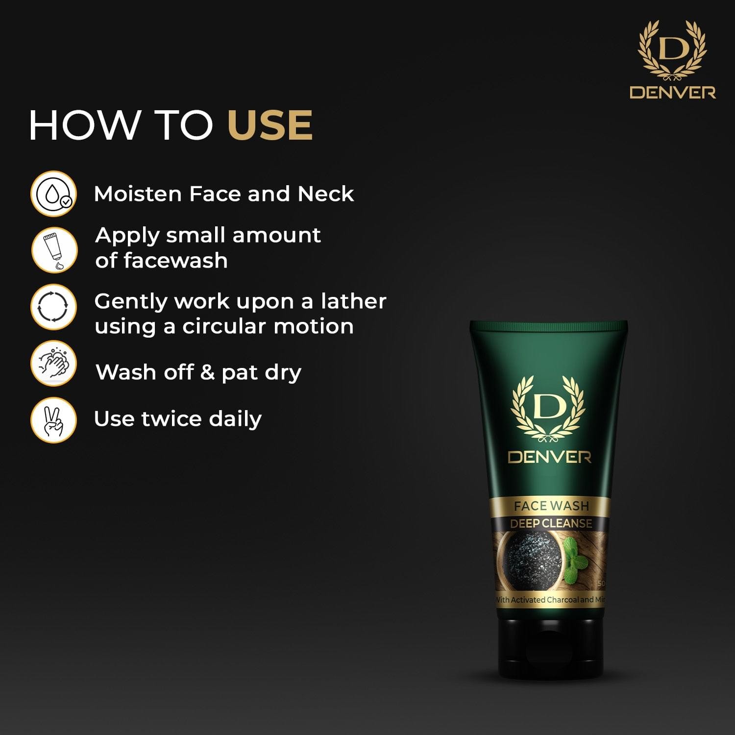 The Denver Deep Cleanse Face Wash is a skincare product formulated to thoroughly cleanse and purify the skin. It combines activated charcoal, mint, and aloe vera to remove dirt, oil, and impurities, leaving the skin refreshed and rejuvenated. This face wash is suitable for all skin types and can be used twice daily for optimal results.