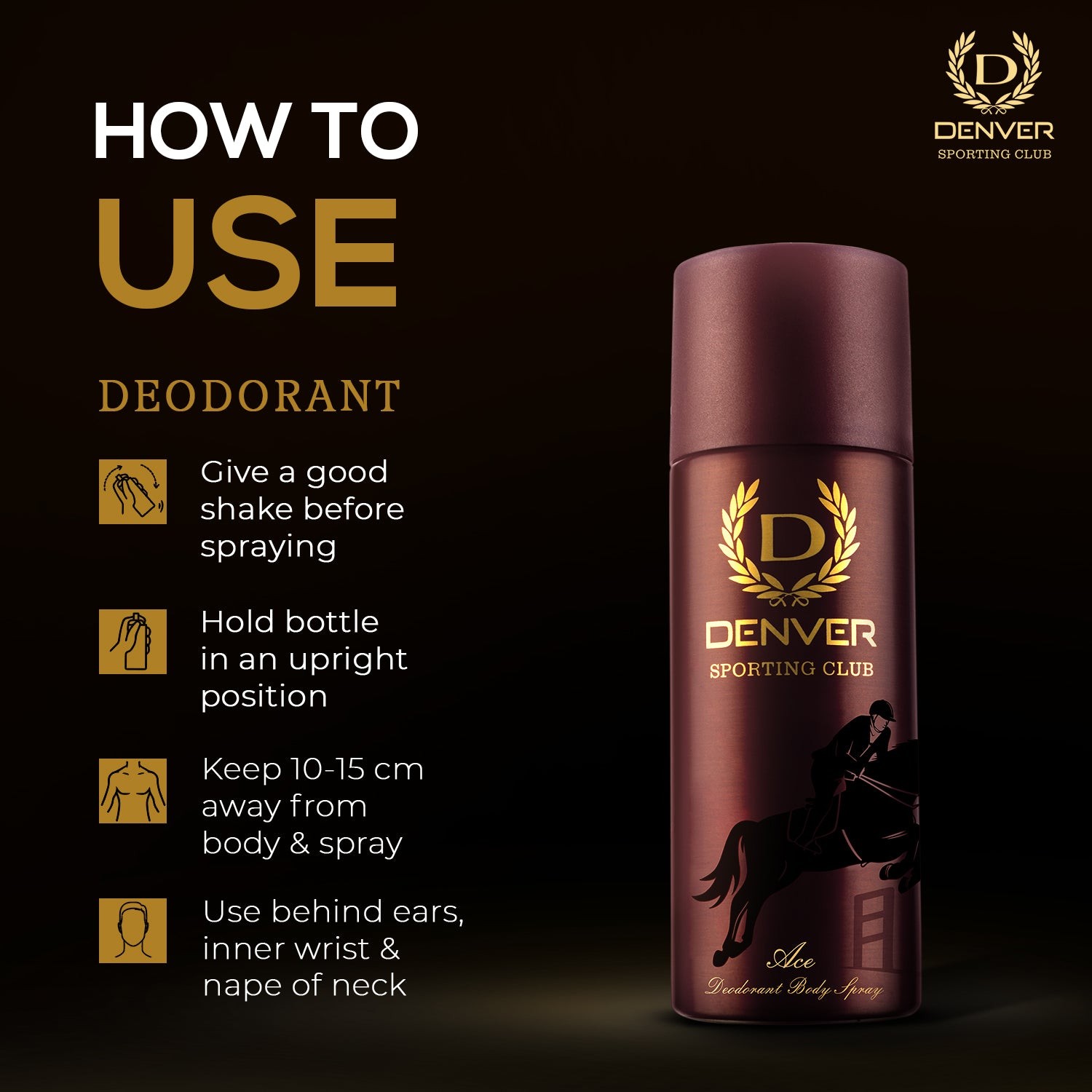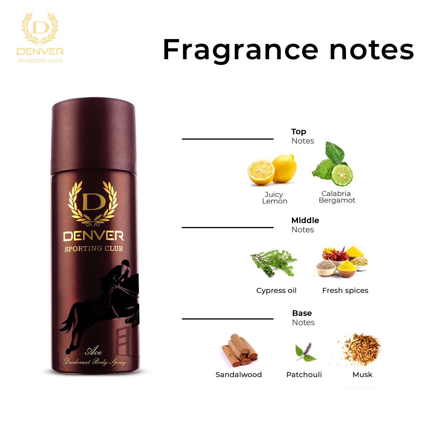 Denver Ace Sporting Club Deo for Men is a deodorant spray designed to keep you feeling fresh and confident throughout the day. It features a fresh, masculine woody-citrus aromatic fragrance, crafted to appeal to today's youth. This deodorant offers long-lasting protection against body odors, ensuring you stay delightfully fresh and confident.