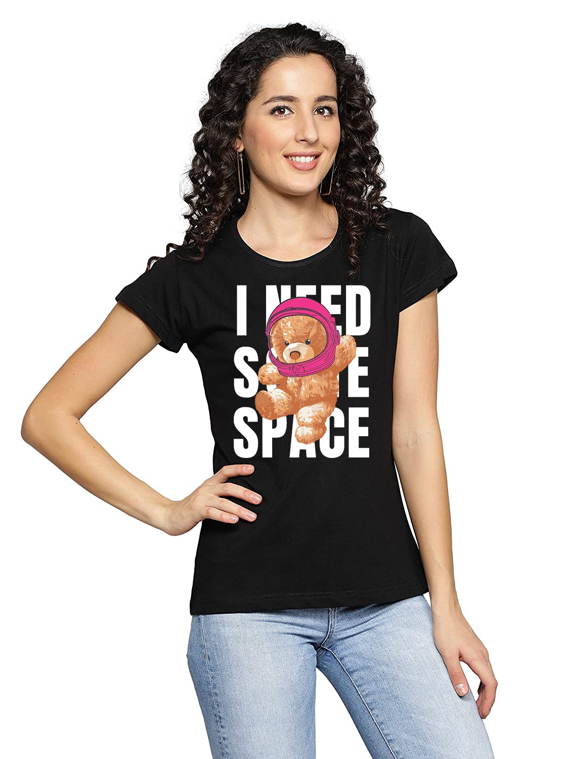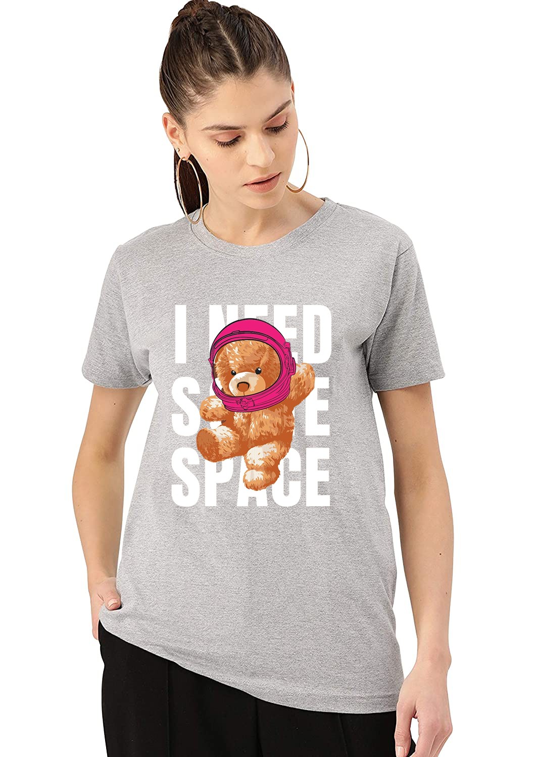 Elevate your casual wardrobe with the "I NEED SOME SPACE" printed T-shirt for women by iKing. Featuring a bold, stylish statement graphic, this T-shirt perfectly blends humor with a touch of attitude. Made from high-quality, breathable cotton fabric, it ensures all-day comfort and durability. The relaxed fit and round neckline make it ideal for lounging, running errands, or pairing with jeans for a casual outing. Express your vibe and stand out in this versatile and trendy piece.
