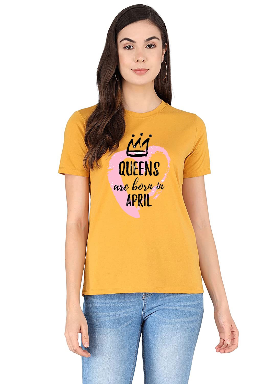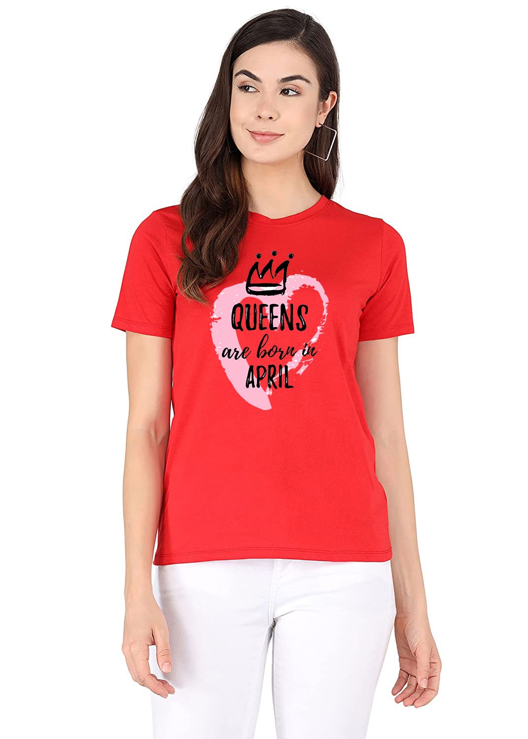 Celebrate your April birthday in style with the Women's Cotton April Printed Birthday T-Shirt by iKing. Crafted from 100% premium cotton, this t-shirt offers unbeatable comfort, breathability, and durability for all-day wear. Featuring vibrant, high-quality prints that highlight your pride, this tee is perfect for casual outings, lounging, or as a thoughtful gift for loved ones.
