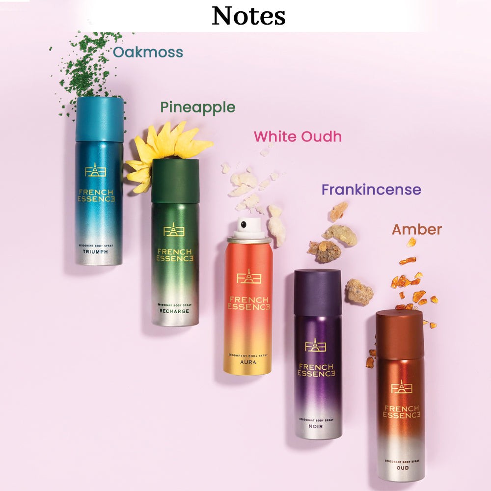 The Body Spray Combo for unisex by French Essence offers a luxurious and invigorating fragrance experience, designed to elevate your grooming routine. This set typically includes a selection of body sprays, each carefully crafted with masculine, refreshing scents that last throughout the day. With a balance of spicy, woody, and citrus notes, these sprays deliver a sophisticated and energizing aroma, perfect for any occasion. Ideal for daily use, this combo leaves you feeling confident, fresh, and rejuvenated, with a subtle yet captivating fragrance that lingers without overpowering. Perfect as a gift or for personal use, this body spray combo is a must-have for men who appreciate high-quality, long-lasting scents.
