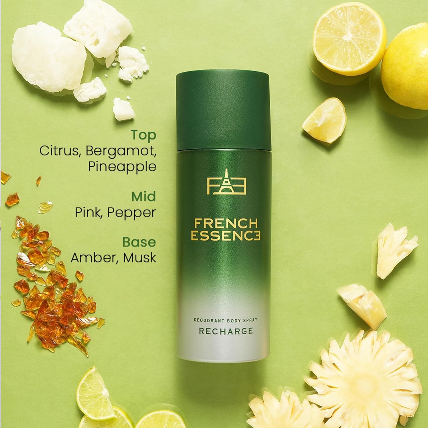 Invigorate your senses with the bold and energizing fragrance of RECHARGE Unisex Body Spray by French Essence. Designed for both men and women, this long-lasting body spray combines fresh and vibrant notes to keep you feeling confident all day.