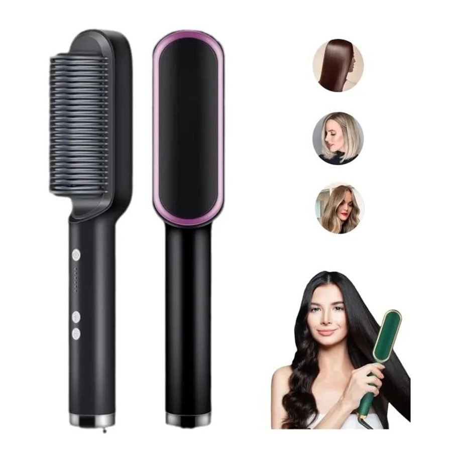 The Hair Straightener Brush with Ceramic PTC Heating is a versatile and efficient styling tool designed for smooth, straight hair in minutes. This professional-grade straightening brush features Ceramic PTC heating technology, ensuring quick, even heat distribution for a sleek finish without damage. With 5 adjustable temperature settings, it caters to all hair types, from fine to thick, allowing for personalized styling. The ergonomic comb design ensures ease of use, while the heat-resistant bristles offer comfort and safety during styling. Perfect for women looking for a fast and professional way to achieve a straight, polished look every time. Ideal for both daily use and special occasions.