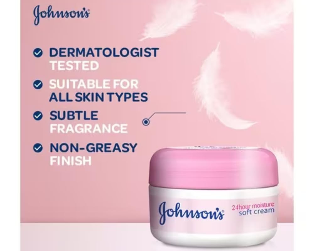 Johnson's 24 Hour Moisture Soft Cream is a 200ml moisturizer designed to provide long-lasting hydration for your skin. Formulated with nourishing ingredients, it helps maintain skin's natural moisture balance, leaving it soft and smooth throughout the day. This cream is suitable for all skin types and is ideal for daily use to keep your skin feeling refreshed and hydrated.