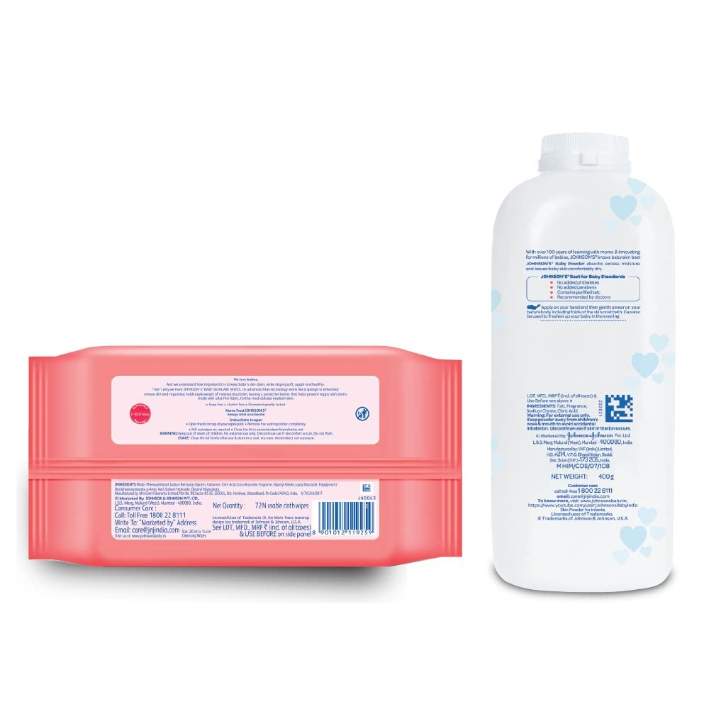 Johnson's Baby Skincare Wipes with Lid (144's) + Johnson's Baby Powder (400g) Bundle
