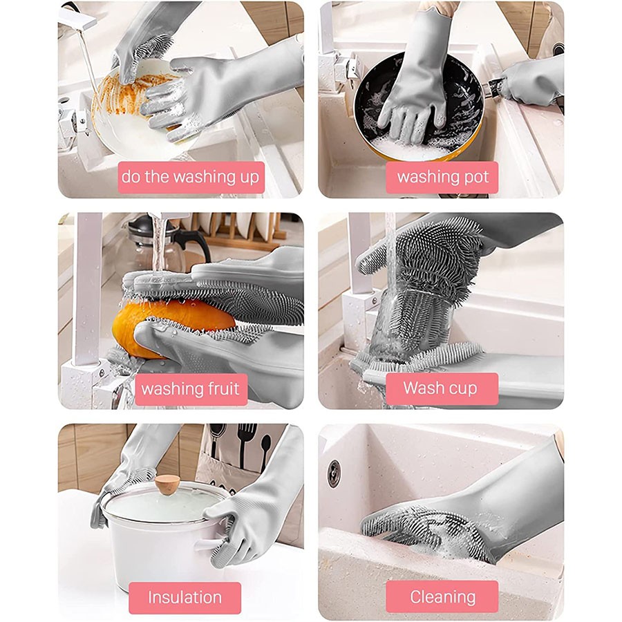 These gloves offer a practical and hygienic solution for various cleaning tasks, combining the functionality of a scrubber with the protection of heat-resistant silicone.