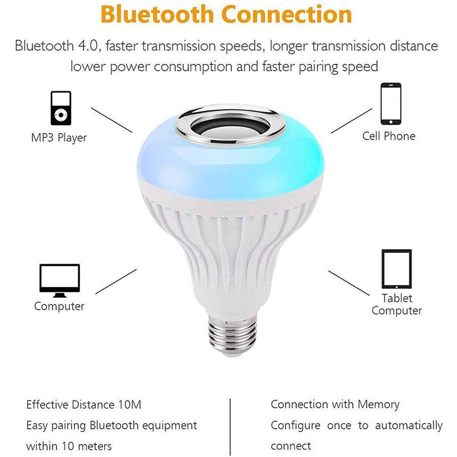 - Bluetooth Speaker Integration: Connect effortlessly to your devices and play your favorite tunes directly from the bulb.