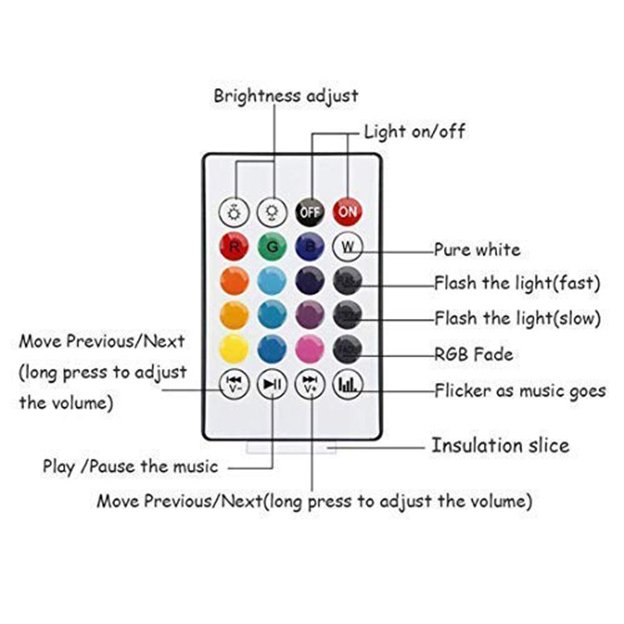- Remote Control: Easily adjust the light colors, brightness, and music volume to suit your mood or setting.