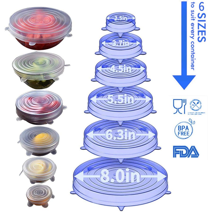 Reusable Flexible Lids for Food Covers – Set of 6 Sizes
