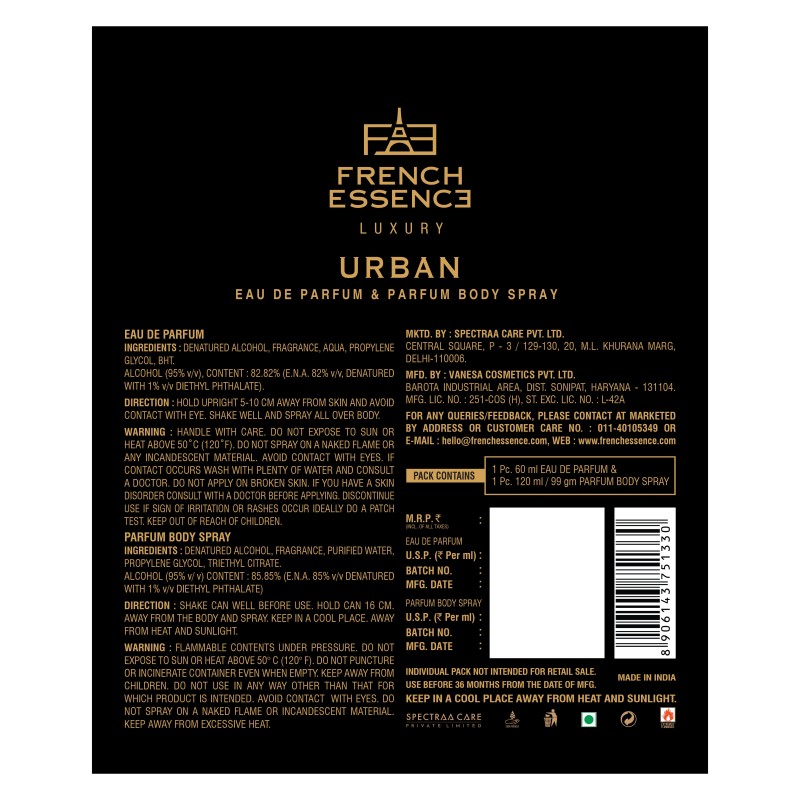 URBAN Men Perfume by French Essence is a sophisticated and contemporary fragrance designed for the modern man. This scent embodies elegance with an energetic and bold touch. It opens with fresh, zesty top notes of citrus and green accords, giving a vibrant and invigorating first impression. The heart features aromatic spices and woody elements, creating a refined yet masculine blend. Finally, the base notes offer warmth and depth, with hints of musk, amber, and rich woods, leaving a lasting impression of strength and sensuality. URBAN Men by French Essence is perfect for daily wear or special occasions, exuding confidence and modernity.