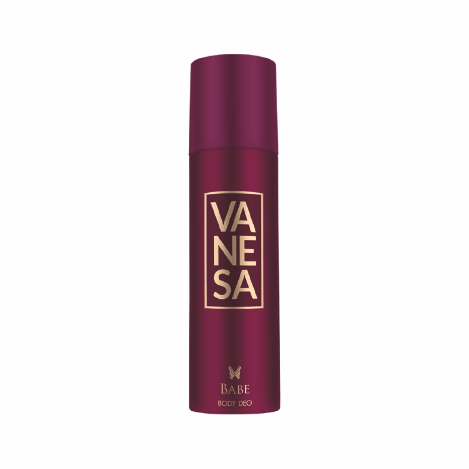 The Vanesa Babe Body Deodorant (150 ml) is a women's fragrance that combines floral and fruity notes to create a captivating scent. Its top note features fresh mandarin, leading to a heart of rose and jasmine, and settling into a base of blackberry and musk.