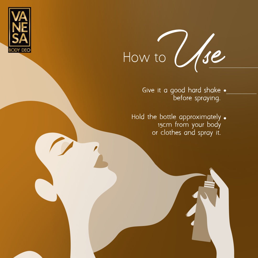 - Feel free to spray on your clothes for a lasting impression.