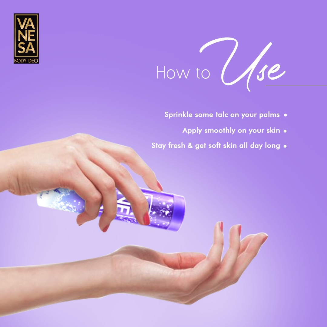 How to Use: Apply the talcum powder all over your body after a shower to enjoy a long-lasting fresh and invigorating feeling.