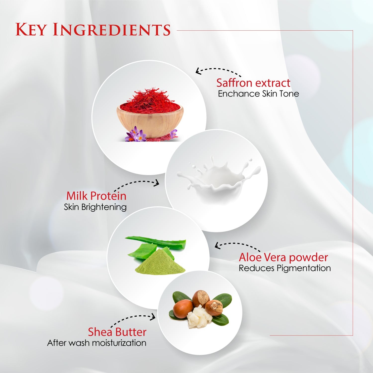 • Saffron Enriched: Helps brighten the skin tone and improve complexion.