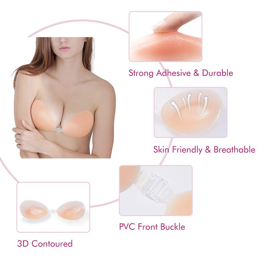 The Self Adhesive Bra Strapless Backless Invisible Bra is a reusable and versatile undergarment designed for ultimate comfort and support. Made from high-quality silicone, it offers a seamless, invisible fit that is perfect for wearing with strapless, backless, or low-back outfits. The bra features a heavy padding for enhanced push-up effect, providing lift and shaping while remaining wire-free for added comfort. Its adhesive technology ensures a secure fit that stays in place throughout the day, and it is easy to clean and reuse. Ideal for special occasions or everyday wear, this silicone bra combines style, comfort, and practicality for a flawless look.